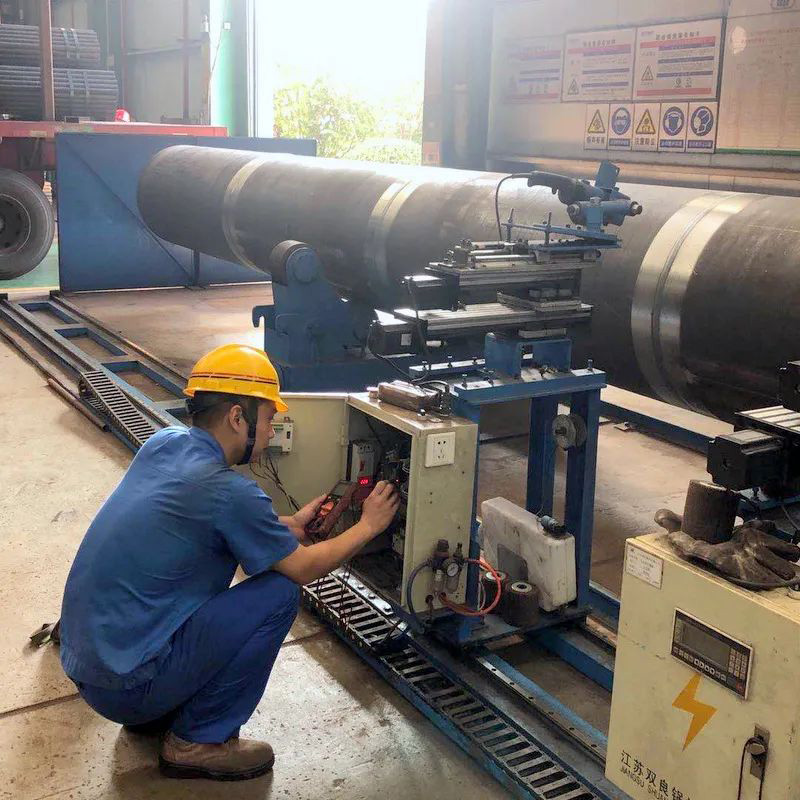 類似設(shè)備技術(shù)改造,吳昊參與完成的項(xiàng)目數(shù)不勝數(shù),比如雙絲埋弧焊焊接電器改造、所有埋弧焊機(jī)無(wú)線遙控改造、組隊(duì)滾輪架拼裝焊接改造、水管鍋筒焊接機(jī)器打磨、模式壁自動(dòng)焊的電焊機(jī)改造等項(xiàng)目。就在剛剛他又和機(jī)修師傅們一起完成一項(xiàng)火管車間管頭打磨機(jī)自動(dòng)化的改造,原來(lái)四五個(gè)人花費(fèi)幾天才能完成的人工打磨,現(xiàn)在只要一人調(diào)運(yùn)上管,按下啟動(dòng)全部自動(dòng)打磨好,省時(shí)省力節(jié)約成本。